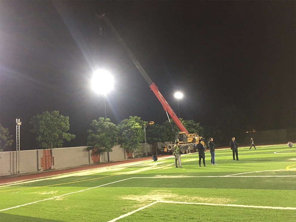 我公司本次的案例位于廣東省英德市某高級中學(xué)運動場,該運動場為7人制和11人制足球場大小,是學(xué)校進行業(yè)余球賽的場地也是師生日常體育活動、校會集合的重要場所,因此,對于解決場地的照明問題刻不容緩。